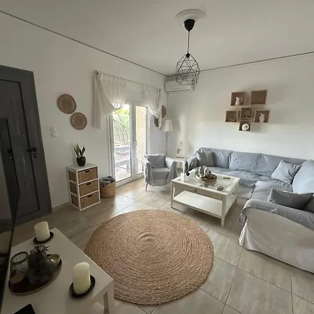 La Paralia Vrachatiou si trova a 10 minuti in macchina da questa villa fronte mare con 3 camere da letto, mentre Atene dista 84 km.